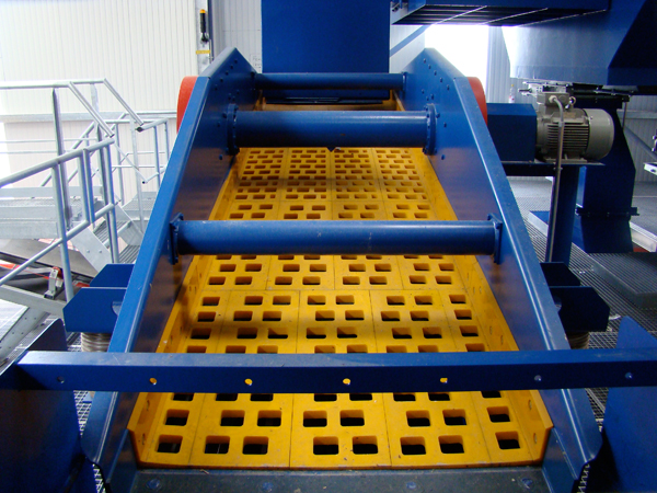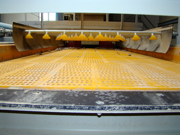 In 95 % der Fälle werden Siebbeläge aus Polyurethan verwendet. Mit diesem Material, das sehr widerstandsfähig ist, wird eine hohe Standfestigkeit erzielt. Unsere Siebbeläge sind als einfach zu wechselndes Modular-Stecksystem ausgeführt. - Bebrausung