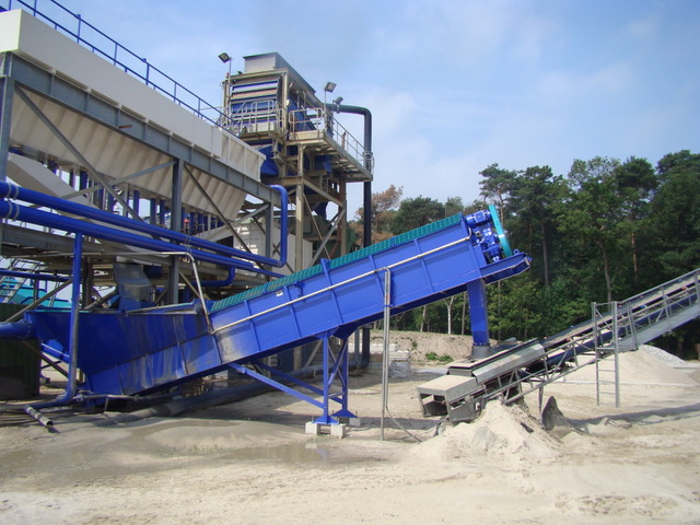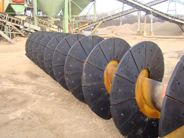Sandschnecken Reinigung und Entwässerung von Sand. Ausspülen von Verunreinigungen und abschlämmbaren Bestandteilen. 8% Endfeuchte möglich mit eine "AGGRE-DRY“ Sandschnecken